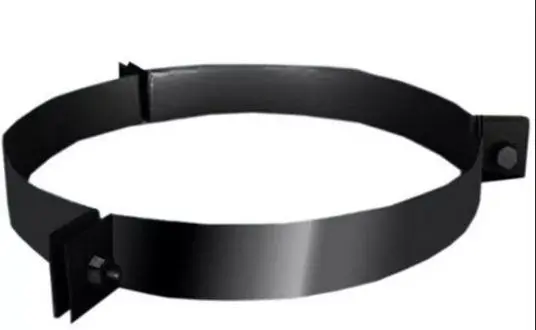 Хомут растяжки предназначен для фиксации дымохода, возвышающегося над кровлей более чем на 2 м, в вертикальном положении. Фиксация хомута возможна с помощью тросов или штанги хомута растяжки. Хомут растяжки трехсекторный, разъемный. Края хомута стягиваются с помощью болтов и гаек. Не является силовым элементом.