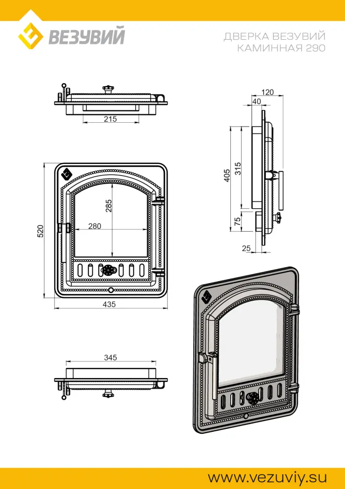 Дверка ВЕЗУВИЙ каминная 290 (Антрацит)