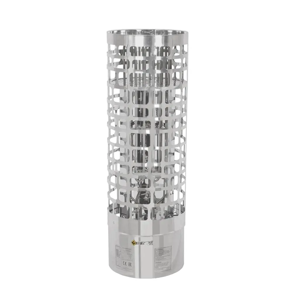 Электрокаменка для бани и сауны Везувий CILINDR 45E напольная, напряжение электрической сети 380V, мощность 4.5 кВт, отапливаемый объем парной от 4,5 до 6,5 м3.